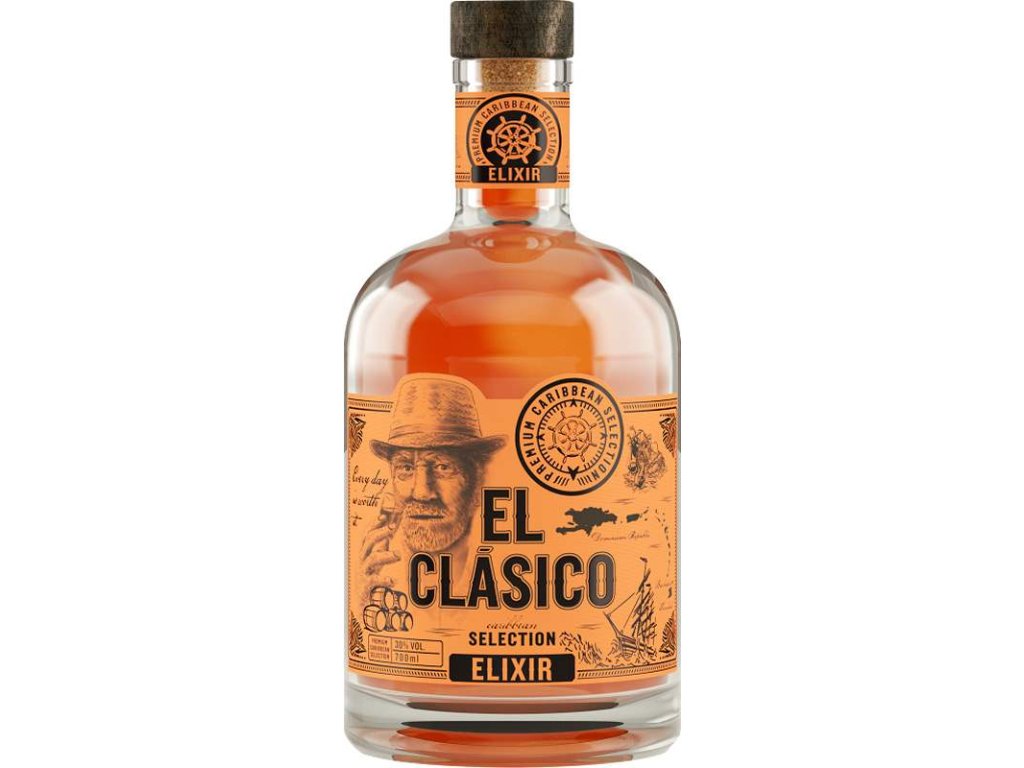 Prémiový výběr rumů z Karibiku, které z El Clásico Elixiru vytváří unikátní zážitek a povznáší tak práci mistrů destilatérů na další úroveň. Unikátně jemný, kořenitý a lehce nasládlý rumový blend obsahuje kvalitní rumy z Dominikánské republiky, Barbadosu a Trinidadu, které zrály v sudech po bourbonu. V chuti poznáte vanilku, skořici a kardamom, které dotváří unikátní vůni a chuť produktu. Odměňte se douškem Karibiku s El Clásico.