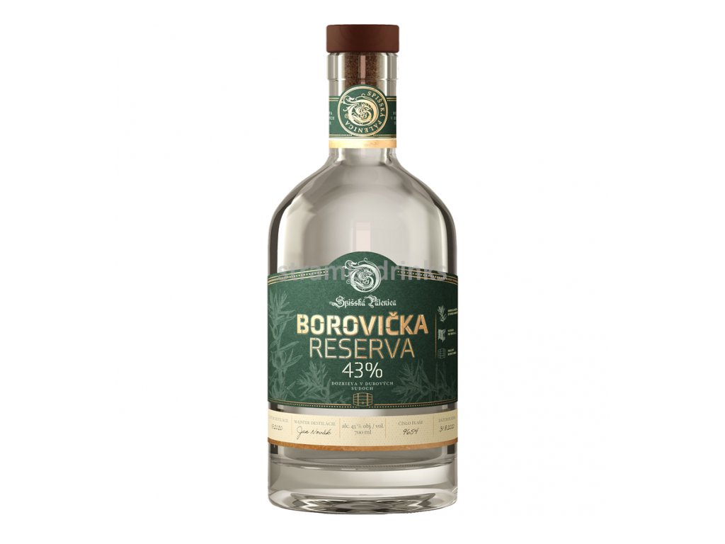 Na výrobu Borovičky RESERVA 43% se používají výhradně přírodní suroviny. Destilát je vyjímečný díky 7 stupňové destilaci a zráním 12 měsíců v dubových sudech. Specifikem je filtrace, která probíhá při teplotě - 9°C. Nápoj je tak čistší a jemnější.